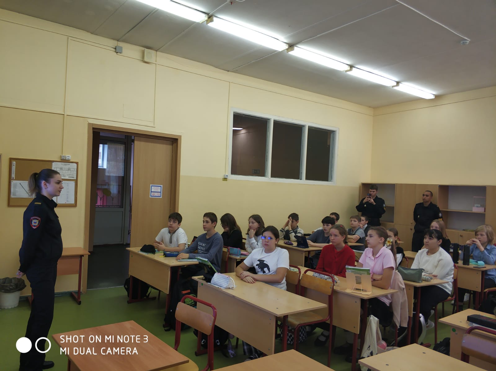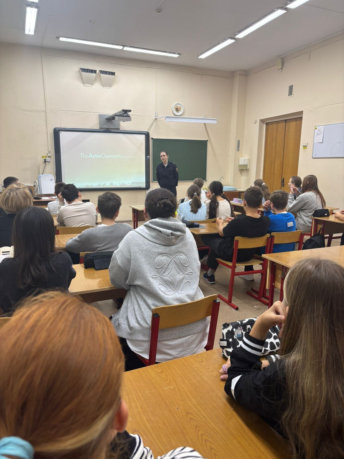 С обучающимися 6х классов инспектор ОДН ОУУПиПДН отдела МВД России по району Гольяново города Москвы, старший лейтенант полиции, Жукова Полина Сергеевна провела беседу на тему: «Профилактика административных правонарушений и преступлений».